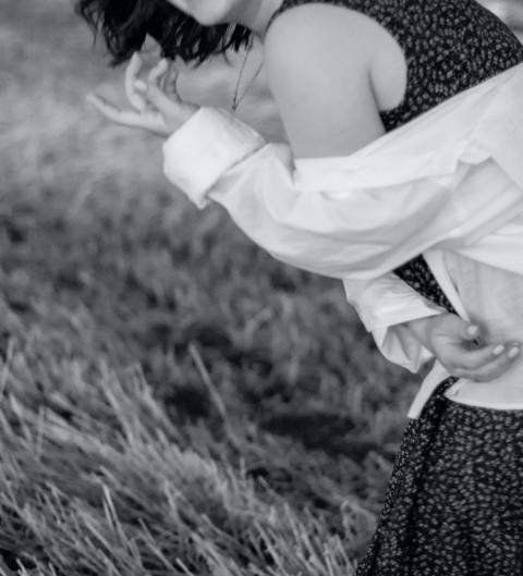 woman in yellow long sleeve shirt and black pants sitting on white floor